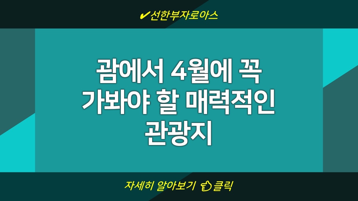 괌은 아름다운 해변과 매력적인 관광지로 유명한 여행지입니다. 특히 4월에는 따뜻한 기온과 맑은 하늘 덕분에 더욱 많은 관광객이 찾는 시기입니다. 이 시기에 방문하면 석양을 감상하며 해양 스포츠와 다양한 액티비티를 즐길 수 있습니다. 이번 글에서는 괌에서 가볼 만한 도시 관광지와 여행 준비물에 대한 정보를 정리했습니다.