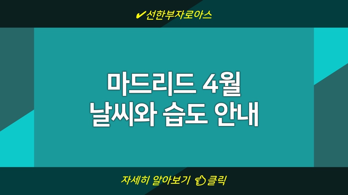 4월의 마드리드는 활동하기 좋은 날이 많아. 그 대신 날씨가 변할 수 있으니까 준비가 중요해. 실시간으로 날씨를 확인하고 알맞은 옷차림을 준비하면 즐거운 여행이 될 거야. 마드리드에 간다면 여러 곳을 탐방하면서 아름다운 순간을 놓치지 말고 즐겨보길 바래!
