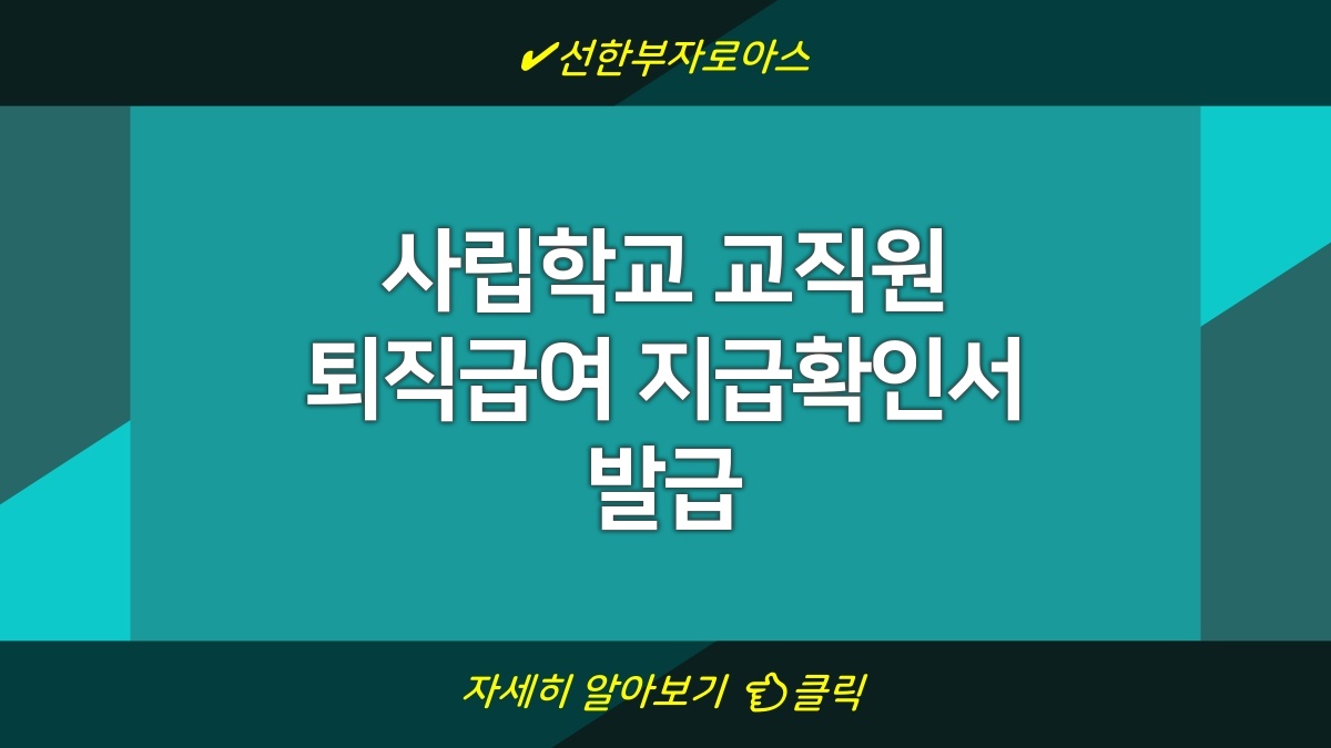 사립학교 교직원이 퇴직할 때 필요한 퇴직급여 지급확인서를 발급받는 방법에 대해 알아보자. 이 인증서는 퇴직 후 급여를 받을 수 있는지를 확인해주는 중요한 서류야. 발급 받을 수 있는 주체, 준비해야 할 서류, 신청 절차 등을 정리해봤어. 퇴직급여 지급확인서를 발급받으려면 반드시 필요한 사항들을 잘 알고 준비해야 해. 간단한 절차로 신속하게 발급 받을 수 있으니, 차근차근 준비하길 바랄게.