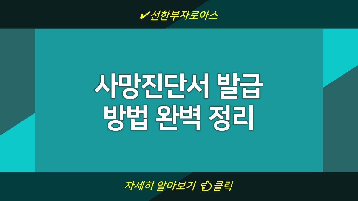 사망진단서는 개인적인 이유 외에도 여러 법적, 행정적 이유로 필요한 문서임. 발급받는 과정이 복잡하지 않으니 필요한 서류를 미리 준비하고 진행하면 좋음. 그러면 불필요한 스트레스 없이 간편하게 발급받을 수 있을 것임. 항상 서류는 잘 보관하는 게 중요하니까 잊지 말어!