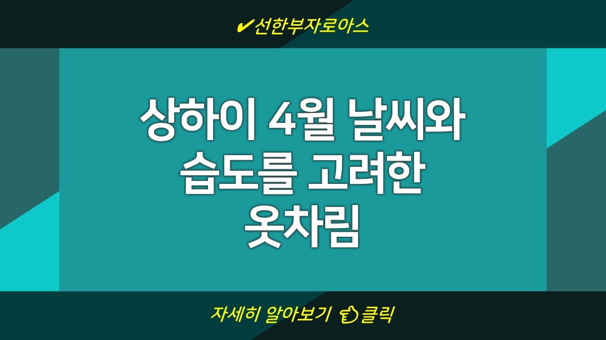 상하이에서의 4월은 문화와 즐거움이 넘치는 시기입니다. 적절한 준비와 올바른 옷차림을 통해 기온 변화에 효과적으로 대처하고, 편안한 여행이 될 수 있습니다. 실시간 날씨 정보를 체크하고, 계절이 주는 즐거움을 만끽하세요!