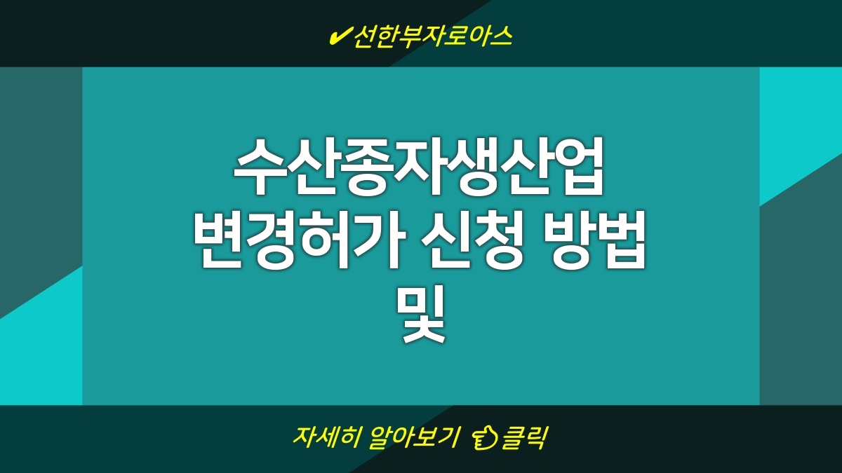 수산종자생산업의 변경허가 신청은 절차가 간단하지만 여러 가지 조건과 서류가 필요함. 이 정보는 업체들이 원활하게 변경허가를 받을 수 있도록 도와줌. 수산종자생산은 생물 다양성을 지키고, 지속 가능한 수산업에 기여하기 때문에 꼼꼼하게 준비하는 게 중요함. 필요한 서류와 절차를 정확히 알아보는 게 좋음.
