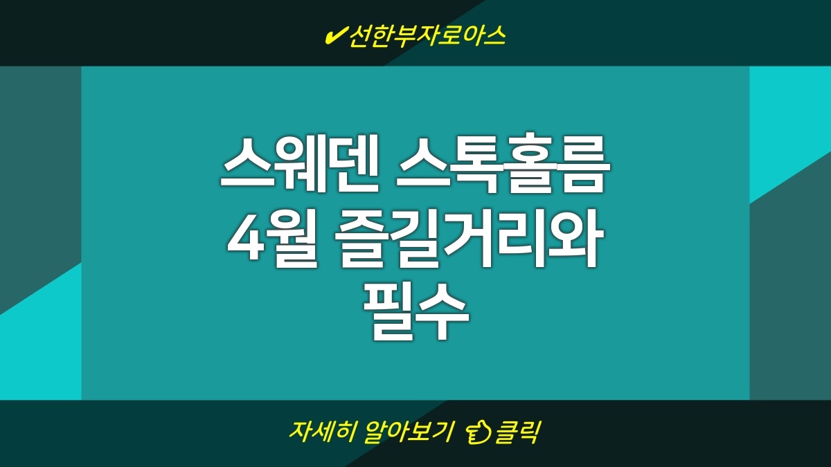 스웨덴 스톡홀름은 4월에 방문하기 좋은 도시야. 다양한 명소와 문화 행사, 자연 탐방까지 즐길 수 있는 점이 매력적이야. 여행 준비를 철저히 해서 알찬 여행이 되길 바래. 스톡홀름에서 멋진 추억을 많이 만들고, 돌아올 때까지 잊지 못할 순간을 즐기길! 지금 바로 여행 계획 세워보자!