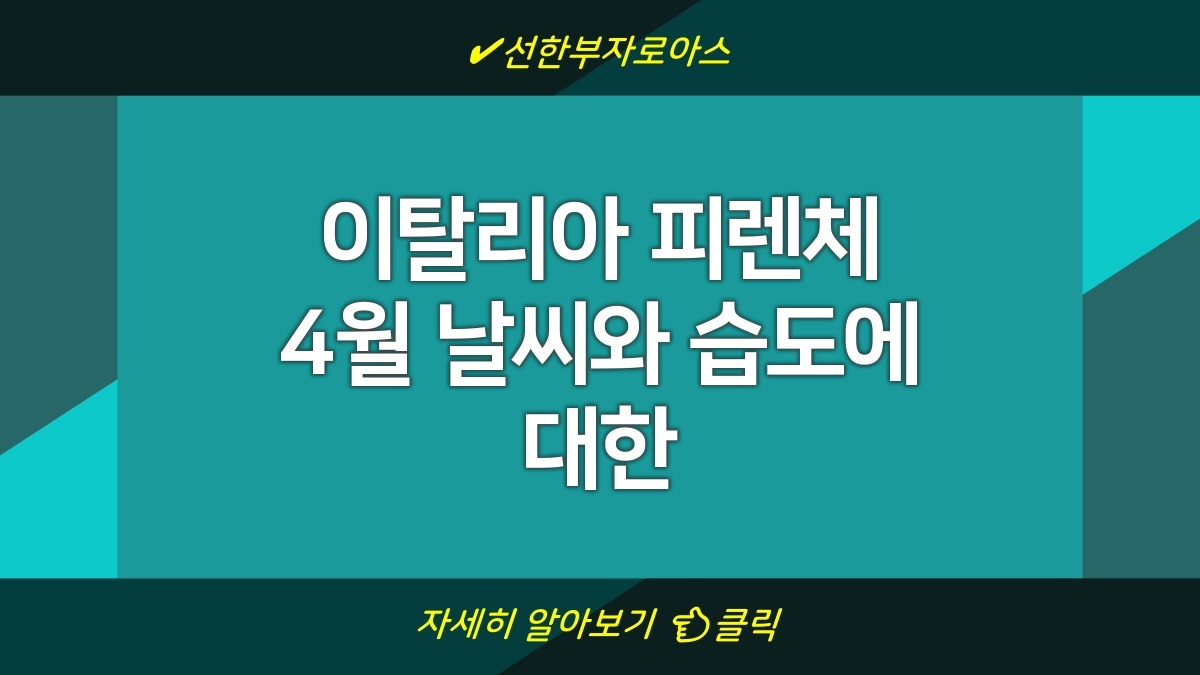 4월의 피렌체는 온화한 날씨와 함께 봄의 정수를 만끽할 수 있는 시점입니다. 평균 기온은 10도에서 20도 사이로 변화하며 낮과 밤의 기온 차가 있을 수 있습니다. 습도는 대체로 중간 수준으로 유지되지만, 간혹 비가 내리는 날씨도 있으니 준비가 필요합니다. 따라서 날씨에 맞춘 옷차림을 고려하는 것이 중요합니다. 여행 시에는 항상 기상 상태를 체크하고 알맞게 옷을 준비하는 것이 필수적입니다.