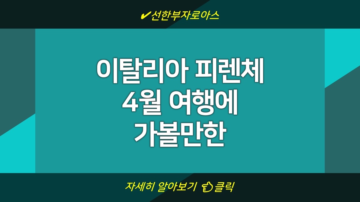 피렌체는 매력적인 관광지와 풍부한 문화적 체험으로 가득한 도시입니다. 4월에 방문하면 연중 가장 즐기기 좋은 시기로, 다양한 행사와 활동이 열리며 지역의 고유한 매력을 경험할 수 있습니다. 충분한 사전 준비와 계획으로 특별한 여행을 만끽해보세요.
