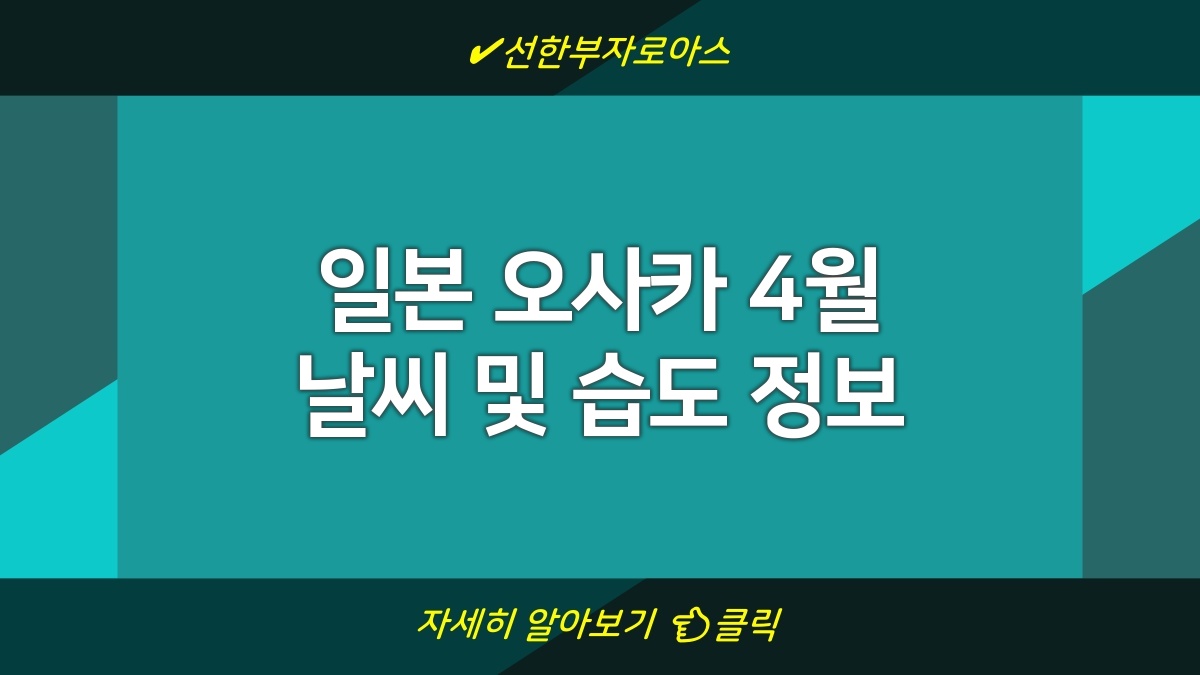 오사카의 4월 습도는 대체로 평균적이지만, 때때로 높은 습도를 느낄 수 있어. 특히 날이 흐리거나 비오는 날에는 불쾌지수가 상승할 수 있음. 그래도 바람이 불면 한결 시원하게 느껴지니까 너무 걱정할 필요는 없음. 가벼운 티셔츠에 자켓을 추천할게. 운동화를 신고 편안하게 돌아다니는 게 좋음.