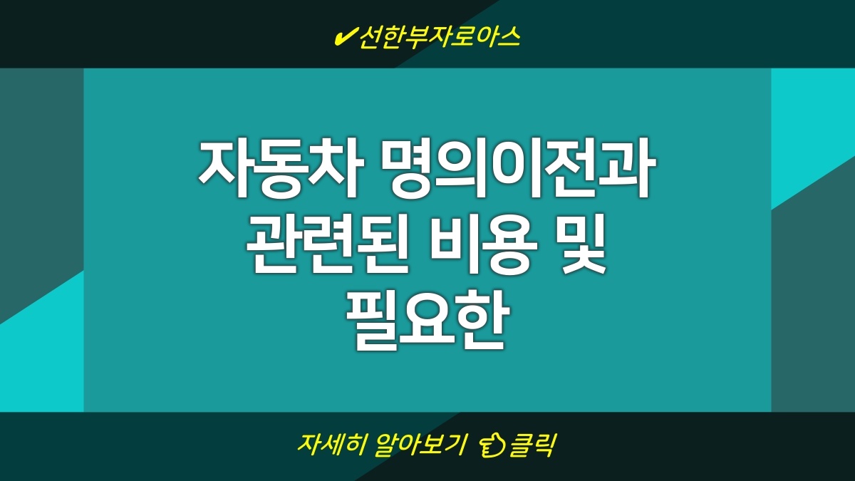 자동차 명의이전은 여러 과정과 서류가 필수적이야. 명의이전 비용과 절차, 기한 등을 정확히 알고 준비하면 매끄럽게 진행할 수 있어. 기한 준수와 서류 준비가 중요하니까 잘 챙겨야 해. 이렇게 잘 처리하면 문제없이 명의이전 할 수 있거든. 그러니까 꼭 한 번 확인해봐.
