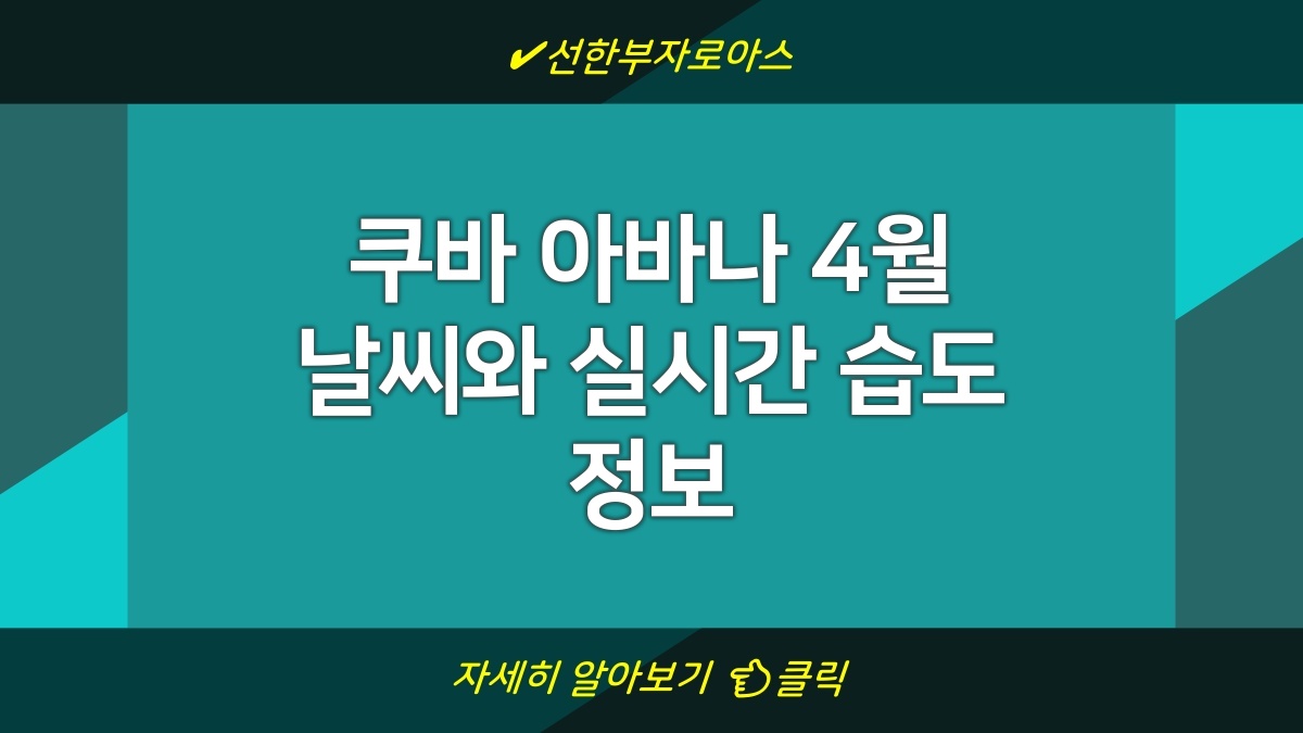 쿠바 아바나의 4월 날씨는 따뜻하고 습도가 높은 편임. 평균 기온은 20도에서 30도 사이로, 낮에는 더 덥고 밤에는 시원해진다. 바람이 불기도 해서 체감 온도는 생활하기 좋음. 유의할 점은 습도가 꽤 높아 땀이 많이 나니까 편한 옷차림이 필요함. 일기예보를 참고하면 더 정확한 정보를 얻을 수 있음. 실시간 날씨 정보는 여기서 확인해봐. 실시간 확인하고 계획 세우는 게 좋음.
