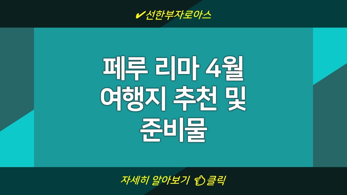 페루 리마는 4월에 가면 특히 좋은 여행지야. 날씨가 따뜻하고, 여행하기 정말 좋은 시기지. 다양한 문화유산과 아름다운 스카이라인을 자랑하는 리마에서 할 수 있는 것들이 많아. 맛있는 음식도 즐길 수 있고, 멋진 풍경을 감상할 수 있는 명소들이 가득해. 여기서 추천할 만한 장소와 필요한 것들 정리해줄게.