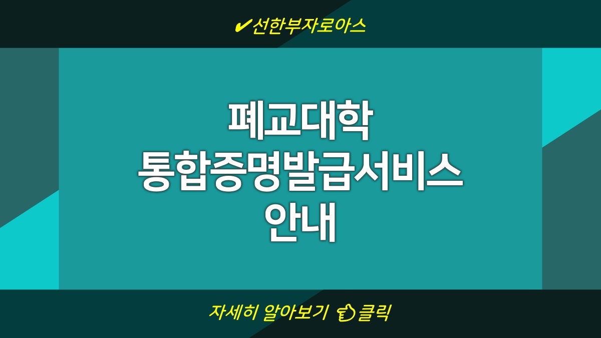 폐교된 대학에서 학위를 받은 사람들을 위한 통합증명발급서비스에 대해 알아볼 거임. 폐교된 대학에 대한 여러 증명서를 한 곳에서 편하게 발급받을 수 있지. 이 서비스 덕분에 필요한 서류를 구하는 게 훨씬 쉬워질 거라 생각함. 특히, 다양한 상황에서 필요한 졸업증명서나 성적증명서 같은 서류가 통합적으로 제공되니 유용하게 활용할 수 있을 거임.