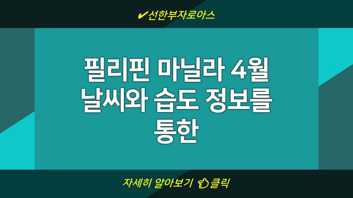 4월의 마닐라는 대개 더운 날씨가 계속되며, 평균 기온은 대체로 여름철 기준으로 높은 편입니다. 장마철이 아니라서 비가 적게 오지만, 하루 중 몇 번의 소나기가 발생할 수 있습니다. 이때의 날씨는 매우 습하며, 체감 온도는 실제 기온보다 더 높기 때문에 외출 시 주의가 필요합니다. 선크림을 반드시 챙겨서 외부 활동을 하는 것이 바람직합니다.