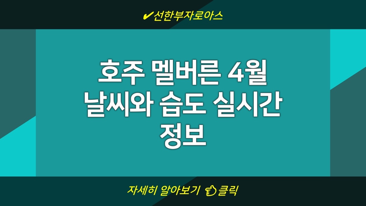멜버른의 4월 날씨는 변화무쌍하다. 기온과 습도에 유의해서 옷차림을 잘 결정해야 해. 실시간 날씨 정보는 꼭 체크하고, 겹쳐 입는 스타일로 준비하면 좋을 듯. 멜버른에서의 날씨를 잘 즐기기 위해서 미리 준비하는 게 중요하다고. 날씨 탓에 계획이 틀어지지 않게 맛있게 보내라고!