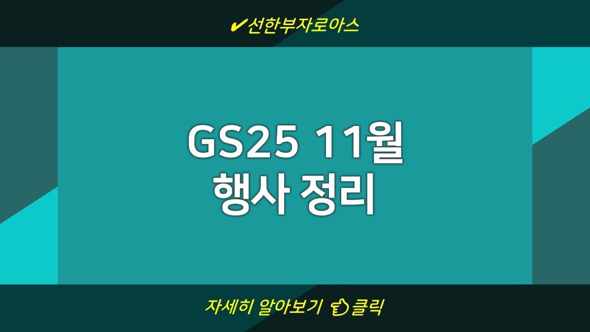 GS25에서 11월 한 달 동안 다양한 행사를 진행한다고 한다. 할인 상품이 많아서 필요한 물건을 저렴하게 살 수 있는 좋은 기회인 것 같아. 특히 이번 행사에서는 자주 이용하는 제품들이 할인 대상에 많이 포함되어 있으니 참고하면 좋을 듯. 기한도 정해져 있으니 놓치지 말고 체크하자. 이벤트 정보는 공식 사이트에서 확인 가능하니까 꼭 들러보라고.