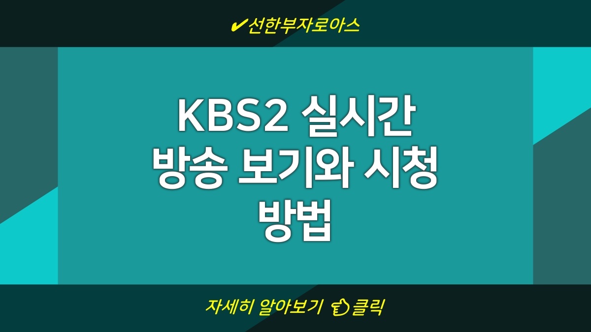 KBS2 실시간 방송은 다양한 시청 방법이 세상에 널리 퍼져있어. 공식 웹사이트, 앱, 스마트 TV 등 여러 경로로 청취할 수 있으니까 꼭 사용해보라고. 이젠 TV 없는 집에서도 방송을 쉽게 즐길 수 있게 되었어. 방송 시간에 맞춰보기에 좋은 옵션이니 체크해보길 추천할게.